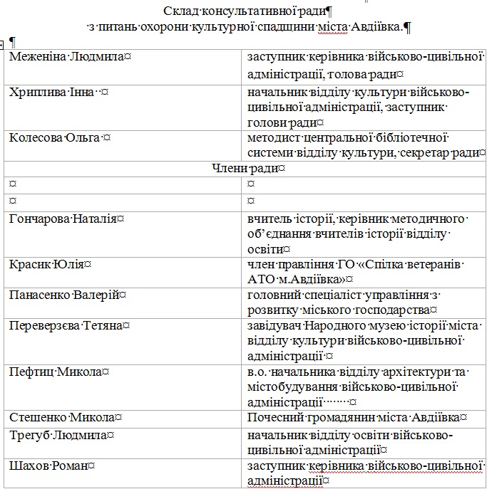 Розпорядження про створення консультативної ради з питань охорони культурної спадщини м. Авдіївка підписав керівник військово-цивільної адміністрації прифронтового міста полковник Павло Малихін.