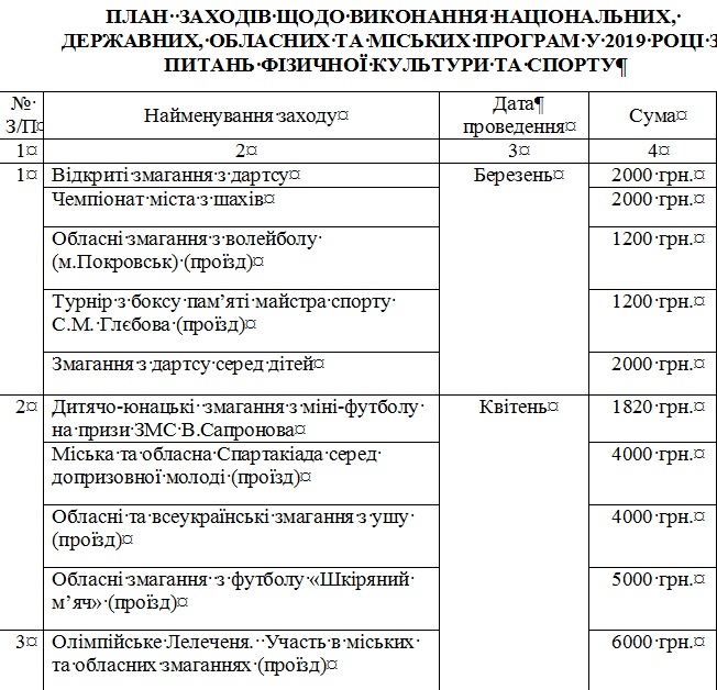 Керівник військово-цивільної адміністрації міста Авдіївка Павло Малихін затвердив план заходів щодо виконання Національних, державних, обласних та міських Програм у 2019 році з питань фізичної культури та спорту.