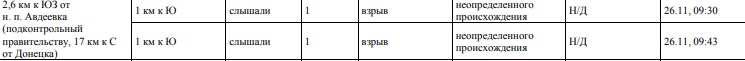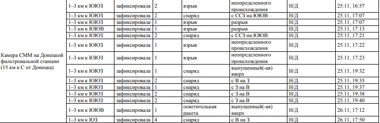 Также были зафиксированы нарушения режима тишины в районах Авдеевки и Донецкой фильтровальной станции (см. таблицу).