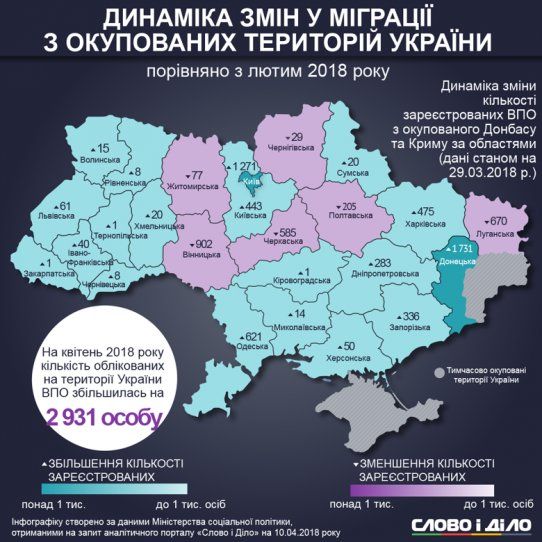 Динамику изменений в миграции населения с временно неподконтрольных украинской власти территорий в прошлом месяце, на основании данных Министерства социальной политики Украины, отследило издание «Слово і діло».