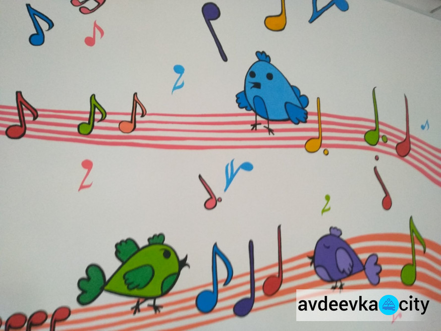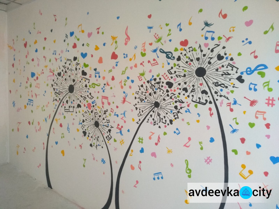 В будущем Центре для развития детей и молодежи, который расположен на базе ОШ №5, активно идет ремонт помещения музыкальной школы. На данный момент художники украшают стены яркими узорами, сообщает avdeevka.city.