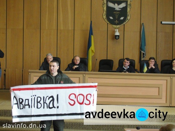 Как передает avdeevka.city в конце аппаратного совещания представителей славянских властей, депутат Ясиноватского районного совета Сергей Чирин вышел с плакатом «Авдіївка! SOS!» и попросил помощи у Славянска для жителей Авдеевки.