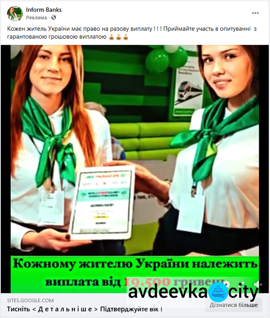 Итак. В Facebook пользователям в последнее время предлагается дешевая реклама. В ней говорится о том, что "каждый житель Украины имеет право на разовую выплату".