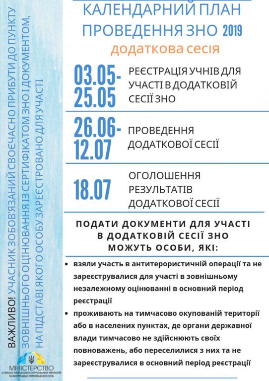 Регистрация учеников для участия в дополнительной сессии ВНО – с 3 до 25 мая.