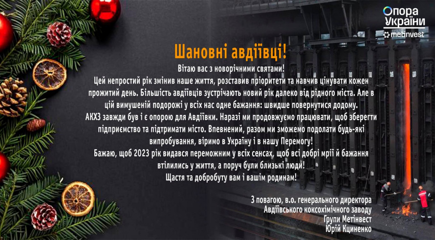 Вітання в.о. генерального директора АКХЗ Юрія Кциненка з Новим роком! 31 грудня 2022 о 17:00 2022-12-31 17:00:00