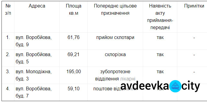 Военно-гражданская администрация Авдеевки намерена сдать в аренду четыре помещения, которые находятся в коммунальной собственности.