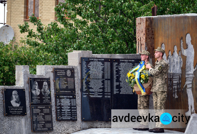 До відома: пам'ятний знак-інсталяцію на честь загиблих захисників Авдіївки, який було відкрито у вересні 2017-го, створили військовослужбовці 72-ї ОМБр та волонтери. У 2019 році було встановлено дві плити з іменами полеглих бійців.