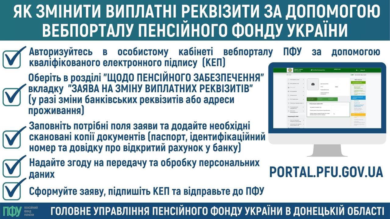 Як змінити виплатні реквізити за допомогою вебпорталу ПФУ