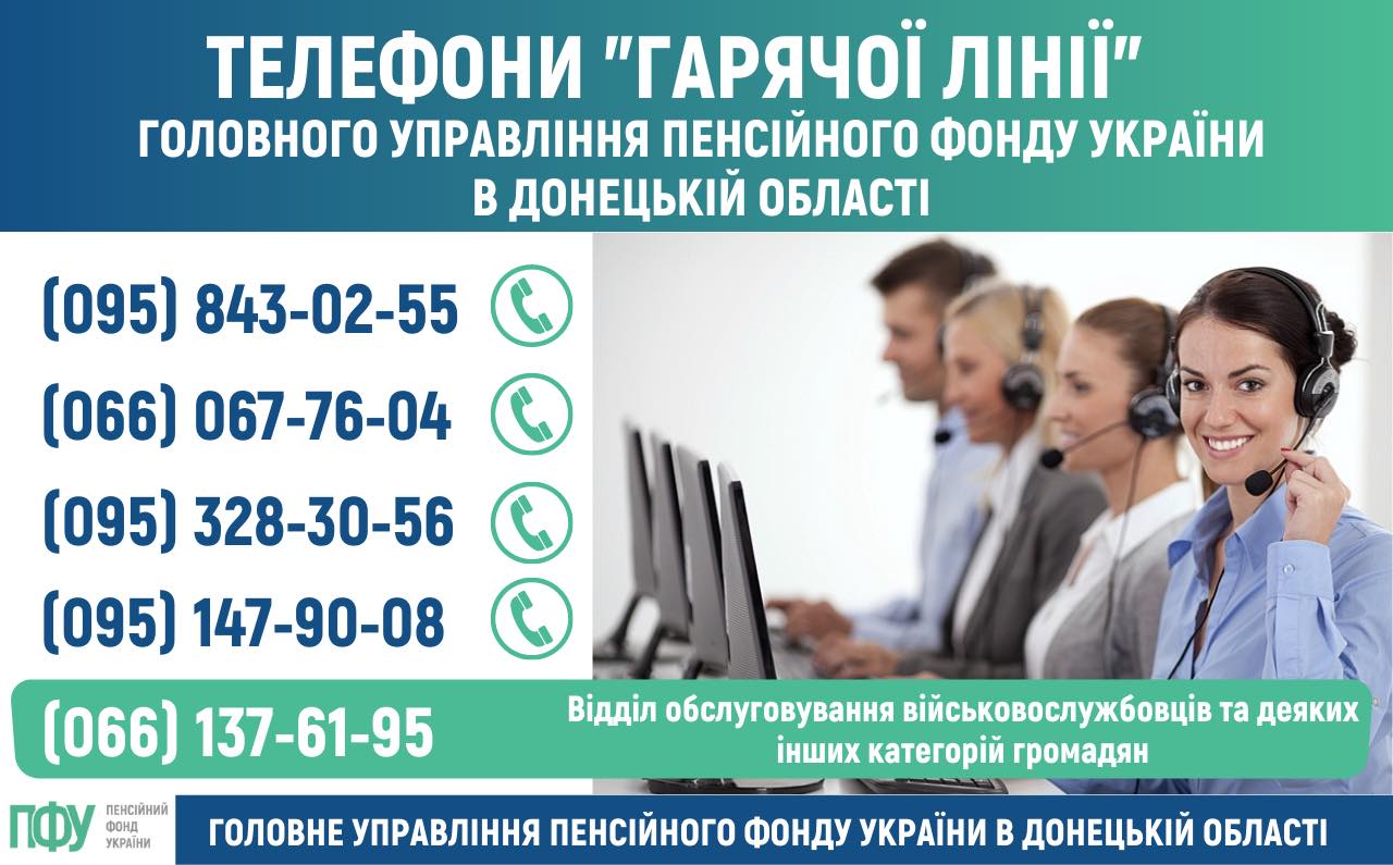 Телефони "гарячої лінії" Головного управління ПФУ в Донецькій області