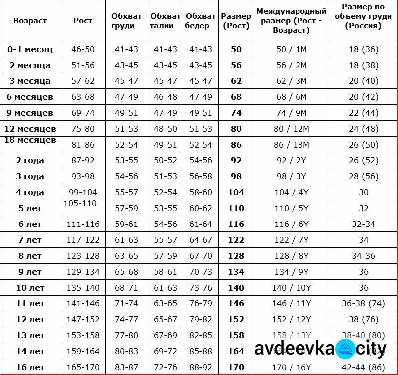 Через месяц после рождения, родители проводят контрольные замеры. Нужны такие данные: