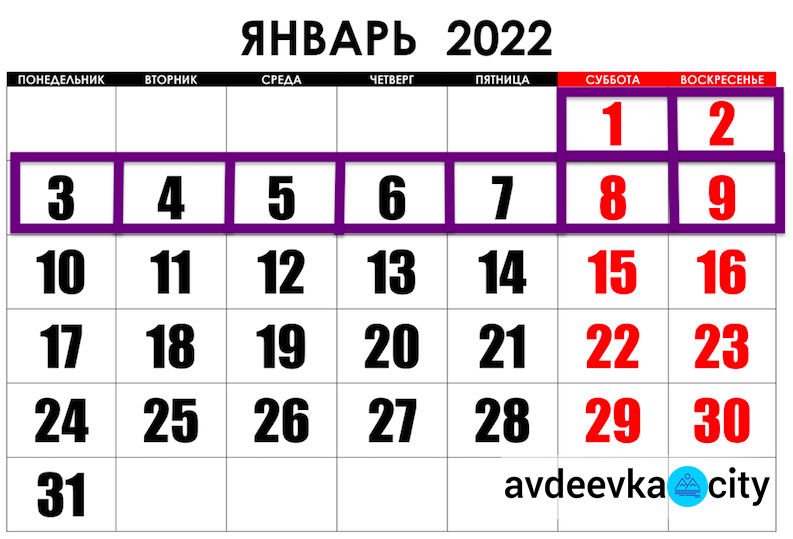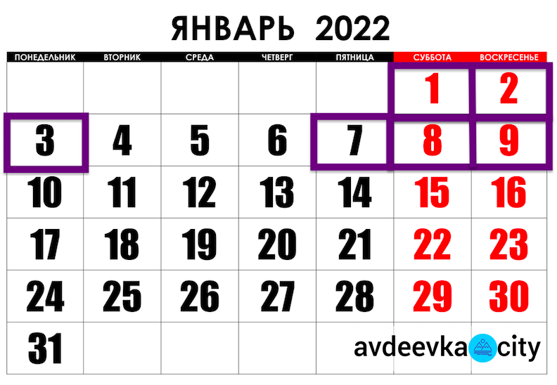 - с 7 по 9 января (с пятницы по воскресенье включительно).