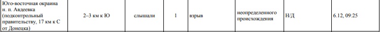 В районе Авдеевки 6 декабря в 09:25 наблюдатели слышали взрыв неопределенного происхождения.