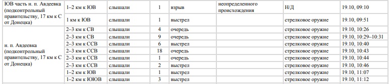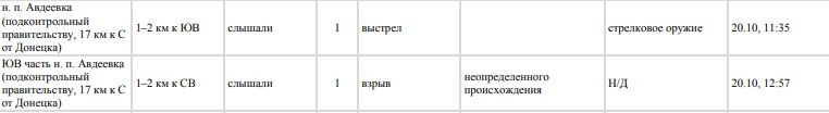 В таблице НРПО неоднократно фигурировала Авдеевка, в районе которой наблюдатели СММ слышали выстрелы и взрывы.