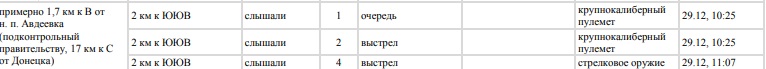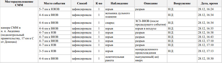 Вечером 28 декабря у Авдеевки фиксировались взрывы неопределенного происхождения. В ночь на 29-е, а также ранним утром и вечером того же дня камера СММ в Авдеевке фиксировала пролеты снарядов, а наблюдатели слышали в первой половине суток пулеметные очереди и выстрелы из стрелкового оружия.
