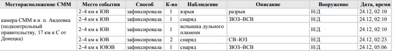 Всего же в период с вечера 23 по вечер 26 декабря СММ констатировала в Донецкой области около 800 взрывов (примерно 50 с вечера 23 по вечер 24, около 340 – с вечера 24 по вечер 25, примерно 390 – с вечера 25 по вечер 26 декабря). Чаще всего НРПО фиксировались в районе Светлодарска, Широкино, Горловки, Дебальцево и Донецкой фильтровальной станции (ДФС).