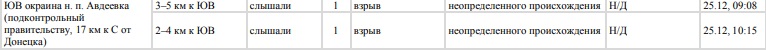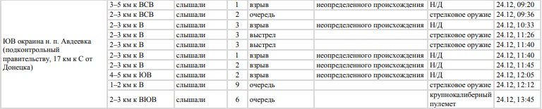 Согласно данным СММ ОБСЕ, в период с 24 по 26 декабря в районе Авдеевки были зафиксированы неоднократные нарушения режима прекращения огня (НРПО).