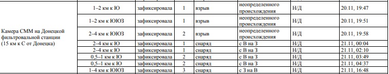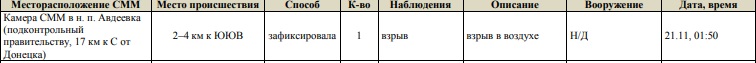 Так, судя по таблице, камера СММ на ДФС зафиксировала за отчетный период 4 взрыва неопределенного происхождения, а также пролет 9 снарядов (и с востока на запад, и с запада на восток).