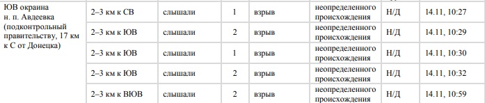В таблице НРПО оказалась и Авдеевке, на окраинах которой наблюдатели 14 ноября неоднократно слышали взрывы неопределенного происхождения.