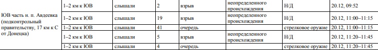 20 декабря в период с 09:52 до 11:45 наблюдатели СММ слышали на юго-востоке Авдеевки 26 взрывов и 45 очередей из стрелкового оружия.