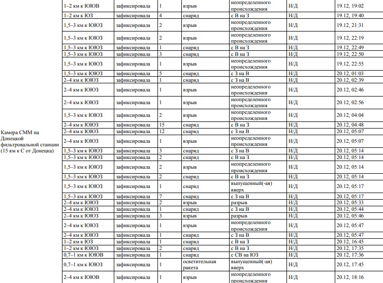 С вечера 19 декабря по вечер 20 декабря камера СММ зафиксировала многочисленные пролеты снарядов и взрывы в районе Донецкой фильтровальной станции.