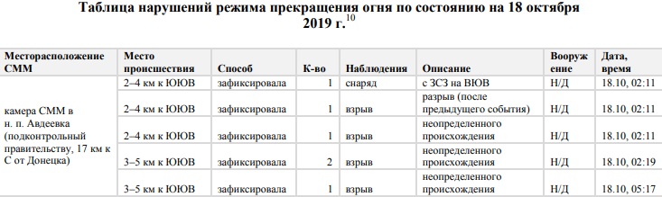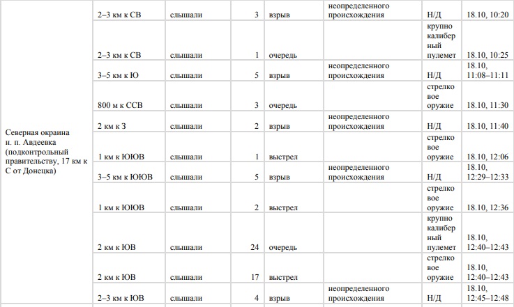 В таблице НРПО фигурирует и Авдеевка, в районе которой 18 октября зафиксированы многочисленные выстрелы и взрывы.