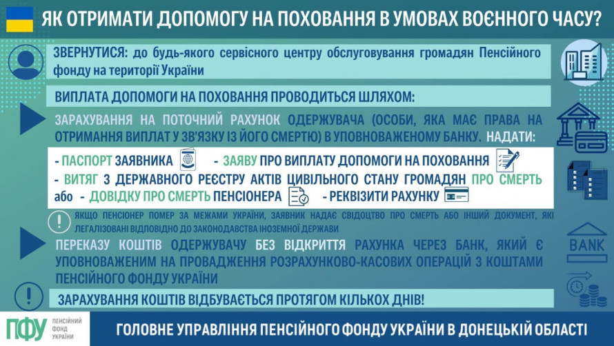 В Україні таку допомогу можуть отримати особи, які організовували процес поховання померлого. Куди звертатися та які потрібно надати документи роз'яснює Головне управління ПФУ у Донецькій області.