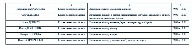 Графік проведення особистих прийомів громадян начальниками структурних підрозділів