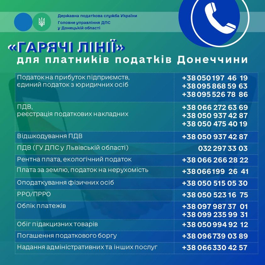 Для інформаційної підтримки платників Донеччини з питань сплати податків функціонують «гарячі лінії».