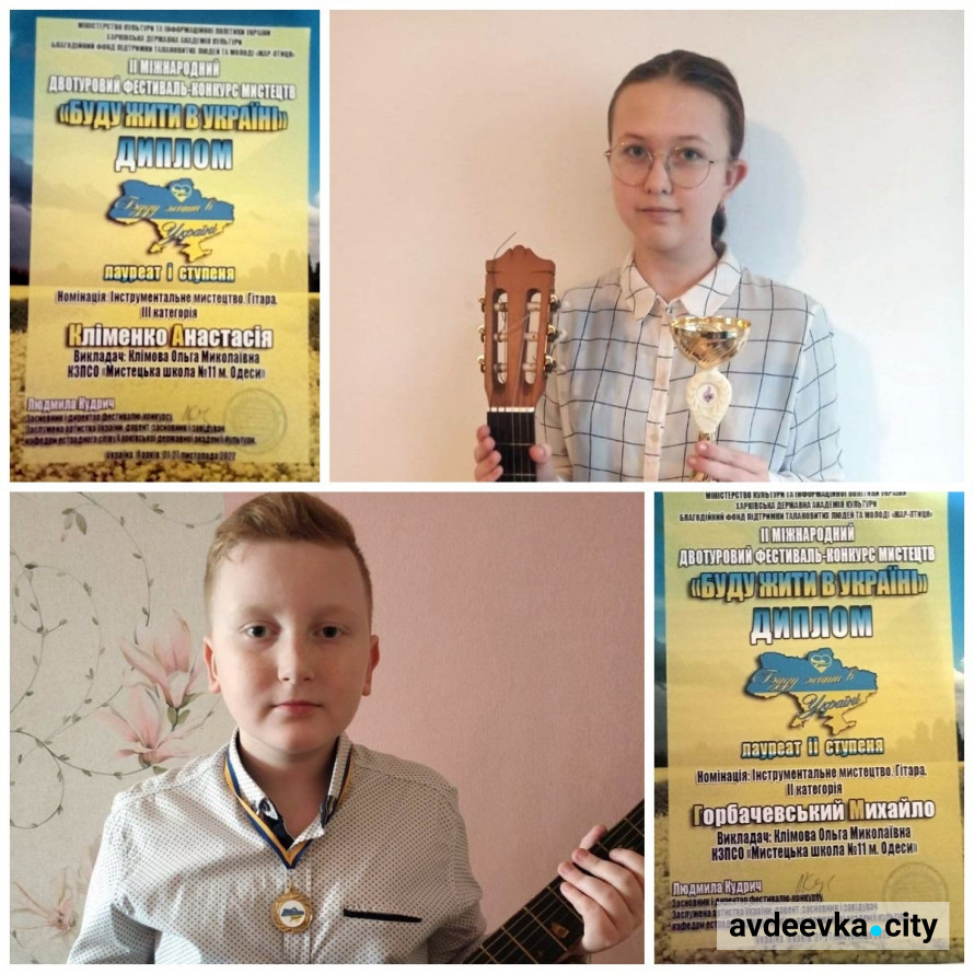 Вихованці Авдіївської музикальної школи Горбачовський Мишко та Клименко Анастасія стали лауреатами Міжнародного багатожанрового фестивалю-конкурсу мистецтв «Буду жити в Україні-2022».