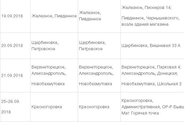 График выездов бригад мобильной выдачи в сентябре: