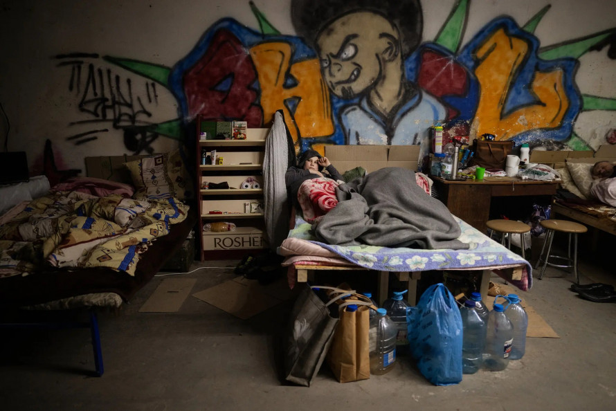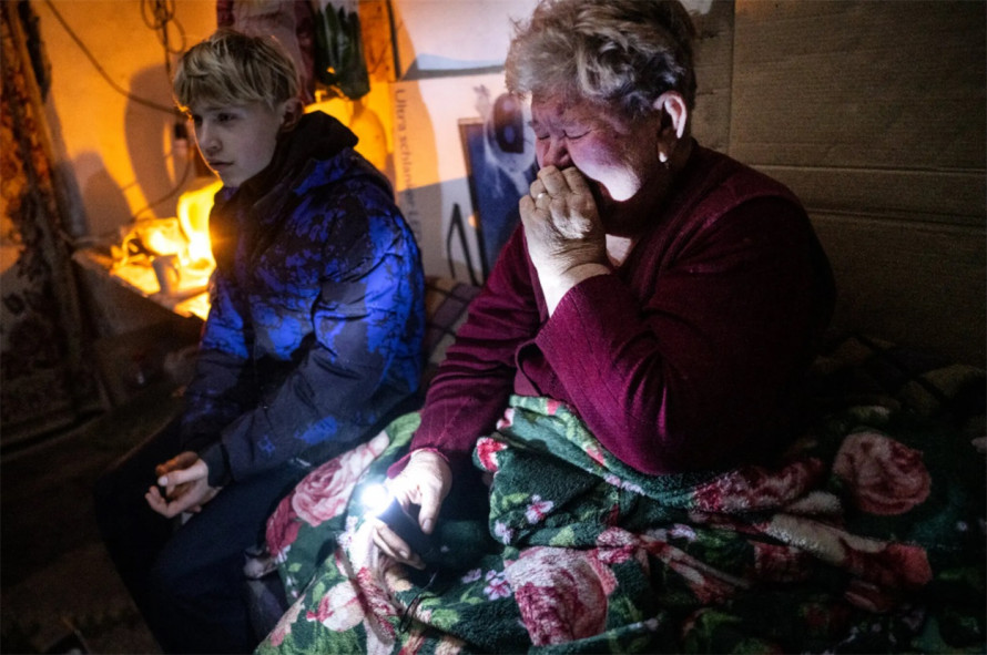 У складі, освітленому однією свічкою, 72-річна Валентина Мутьєва провела більшу частину минулого місяця разом із 10 іншими людьми, включно з її дочкою та двома онуками. Попри те, що жінка сумує за домашнім затишком, справді її хвилює те, як війна вплинула на дітей міста. Вона вказала на одного зі своїх онуків Сашу, білявого 15-річного хлопчика. Жінка каже, що він почав ходити вночі і розмовляти сам із собою.
