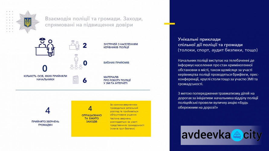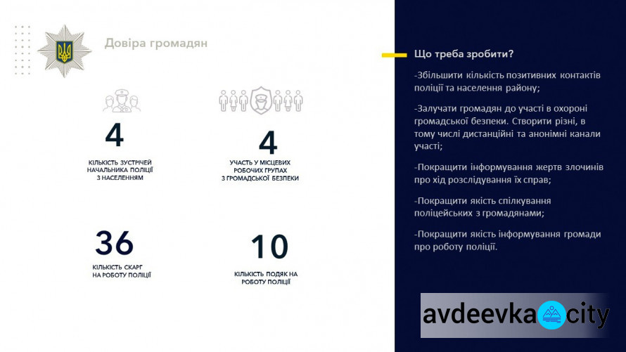 Звіт начальника поліції Авдіївки перед громадою за 4 місяці поточного року